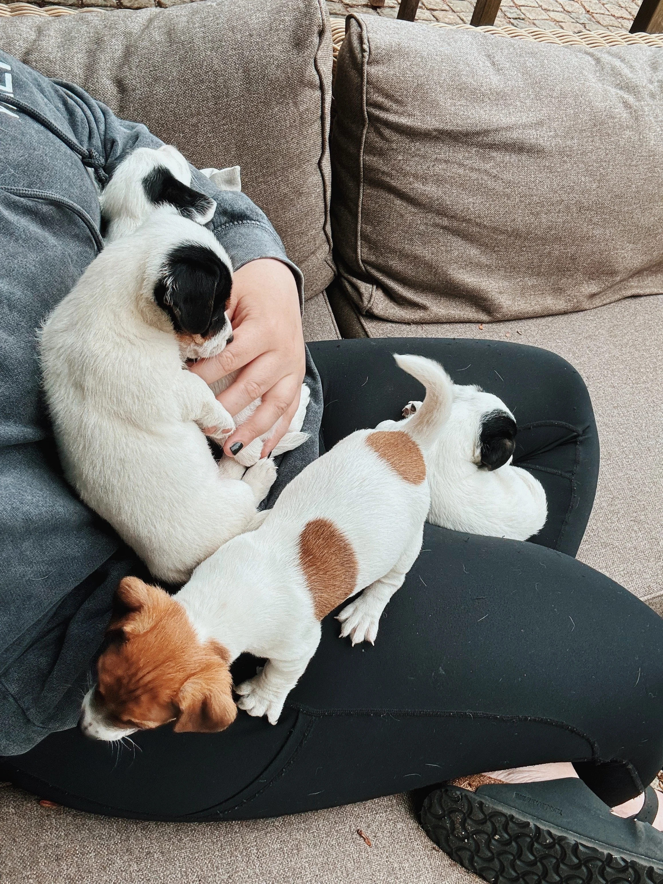 Regular clients and family of Fern (Jack Russell) and Gus (Black Labrador) in Oxford needed a sitter for Fern and her litter of 6 week old puppies! I was thrilled to be looking after 4 adorable Jack Russell puppies and Fern. Unfortunately, Harley (my dog) was not able to come due to the puppies being so young, so she had a lovely long weekend with my brother.