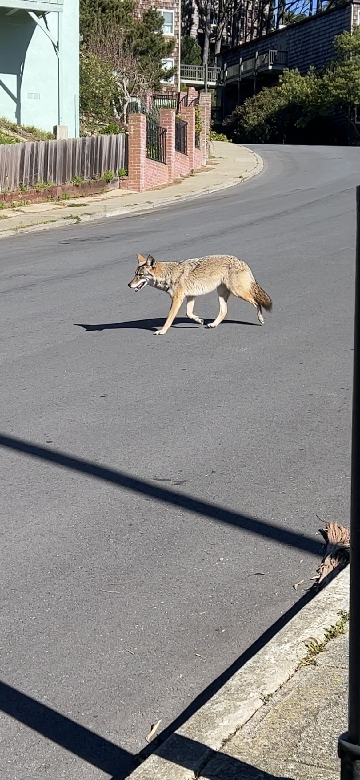 A coyote crossed in front of my path on the way to the grocery store